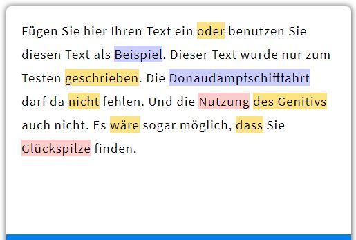 # In einigen Fällen können Verstöße gegen Regeln direkt ermittelt und benannt werden, z.B. wenn Texte eine Abkürzung, den Genitiv, eine Verneinung, das Passiv, das Präteritum, die indirekte Rede oder den Konjunktiv enthalten.